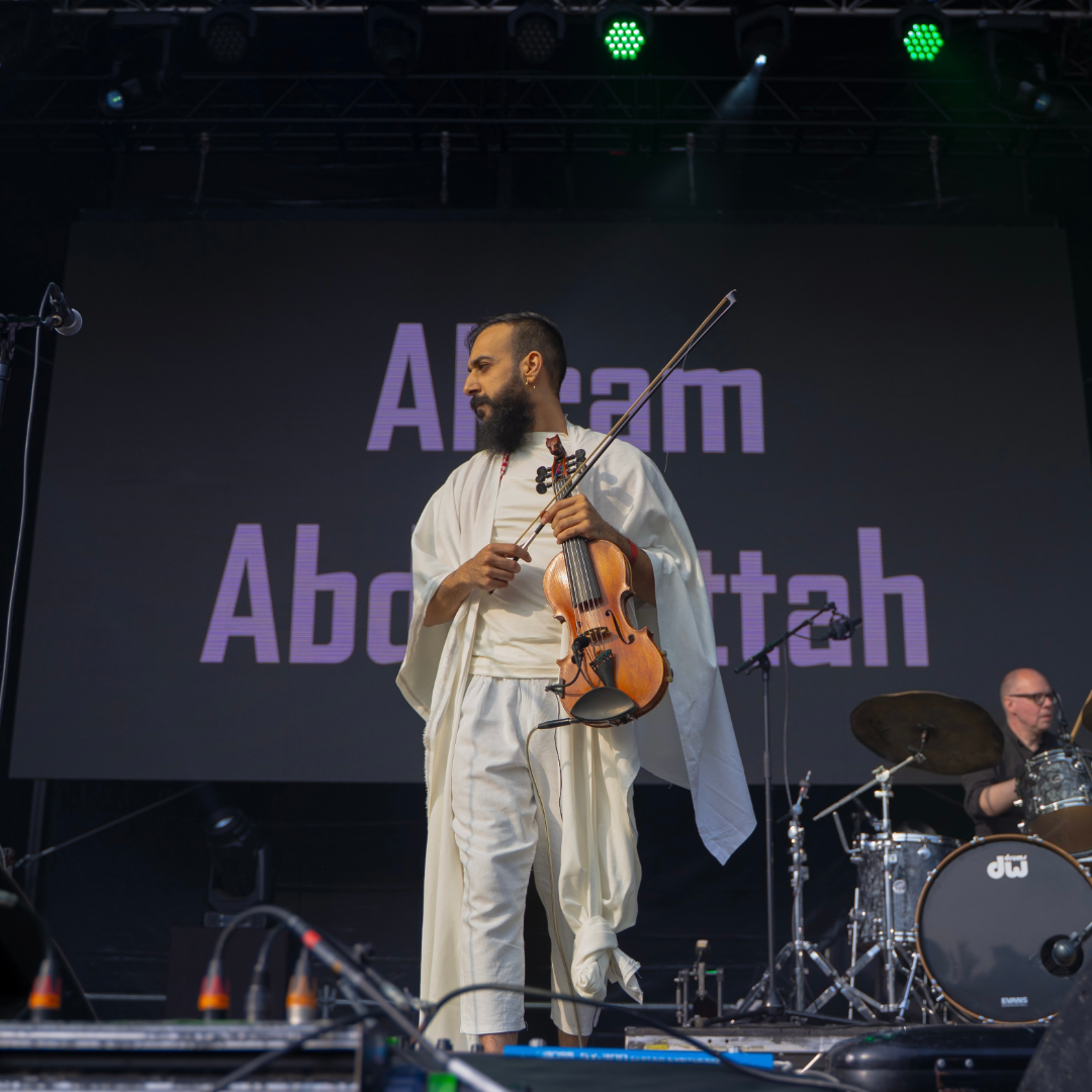 Akram Abdulfattah (1990) is a Palestinian-American violin virtuoso, music composer and producer. Akram's talent received national and international recognition as he formed the youngest Palestinian musical quartet, won prestigious awards and engaged in various international and cross-culture projects, most significantly the Marcel Khalifa Competition, and the National Music Competition for Ensembles.